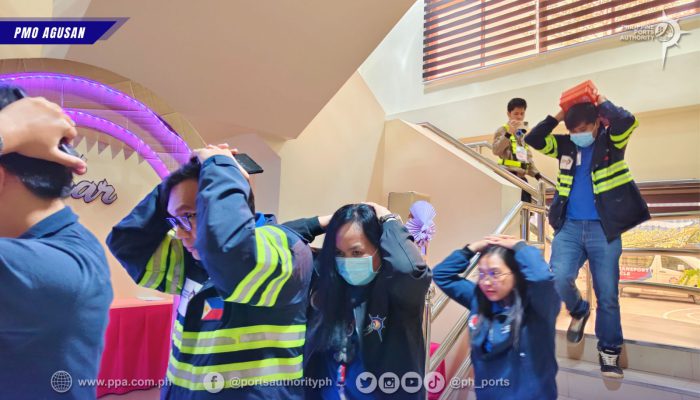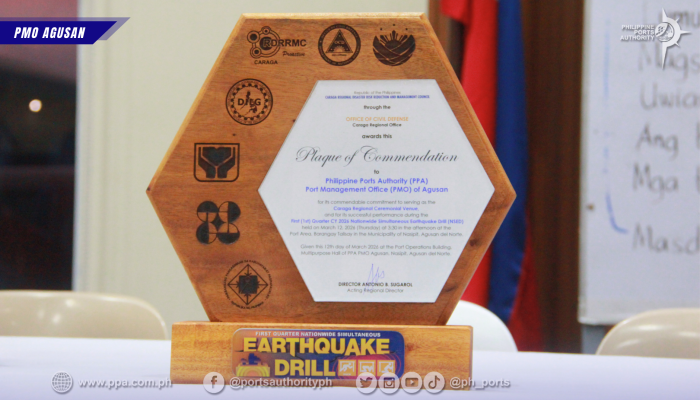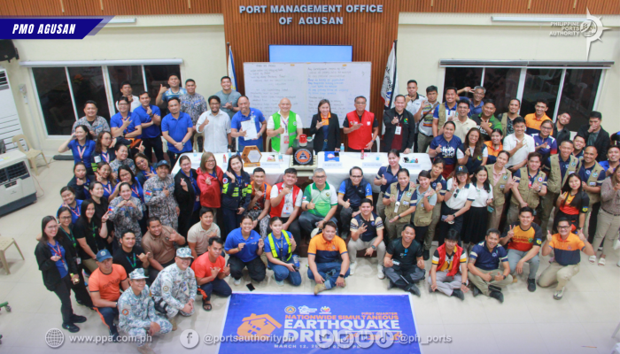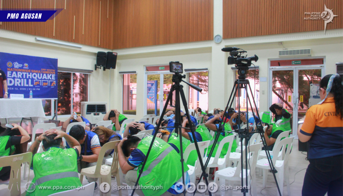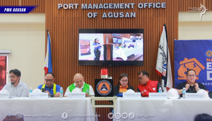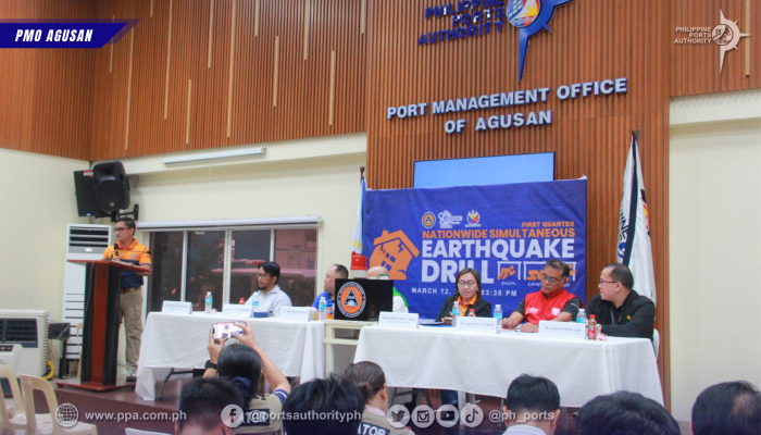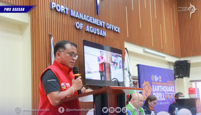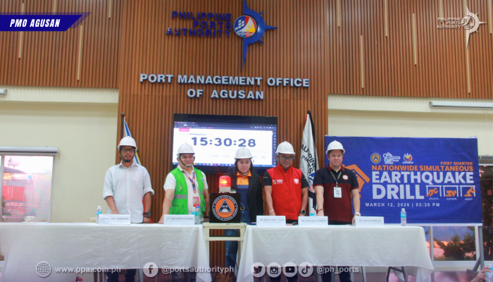 Nasipit Port served as the regional ceremonial venue as the Philippine Ports Authority โ Port Management Office of Agusan (PPA PMO Agusan) hosted the Caraga Regionโs 1st Quarter 2026 Nationwide Simultaneous Earthquake Drill (NSED) spearheaded by the Caraga Regional Disaster Risk Reduction and Management Council (RDRRMC), with disaster response agencies from across the region participating.