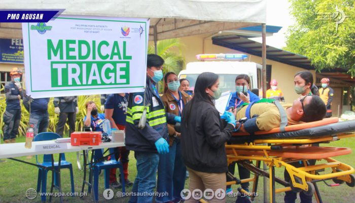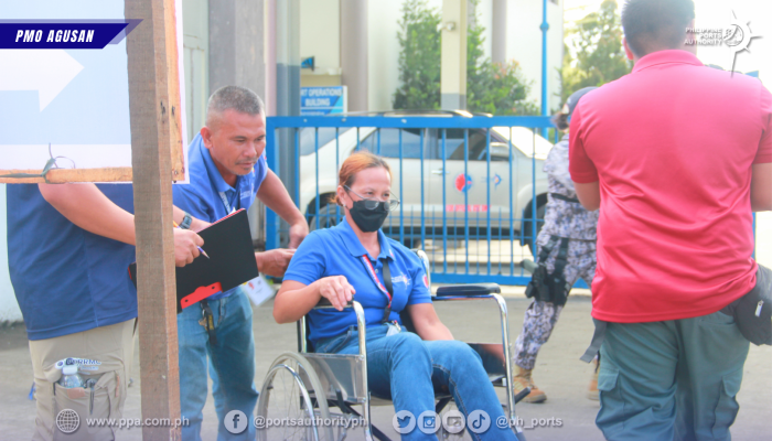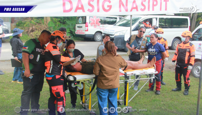 During the drill, participants responded to a simulated strong earthquake scenario that triggered a tsunami warning. The PPA PMO Agusan Incident Management Team (IMT) activated emergency protocols, directing personnel to carry out evacuation procedures toward designated higher ground while ensuring the orderly movement of port users within the terminal area. Maritime responders also conducted Water Search and Rescue (WASAR) operations in nearby waters.