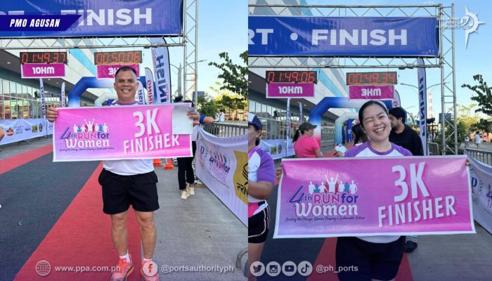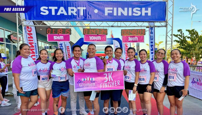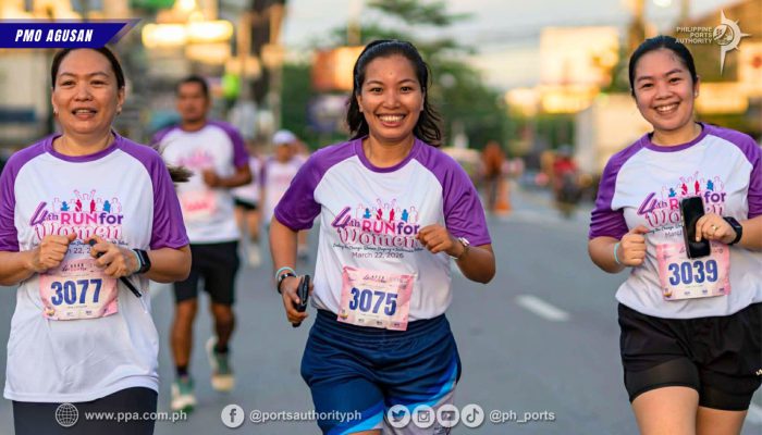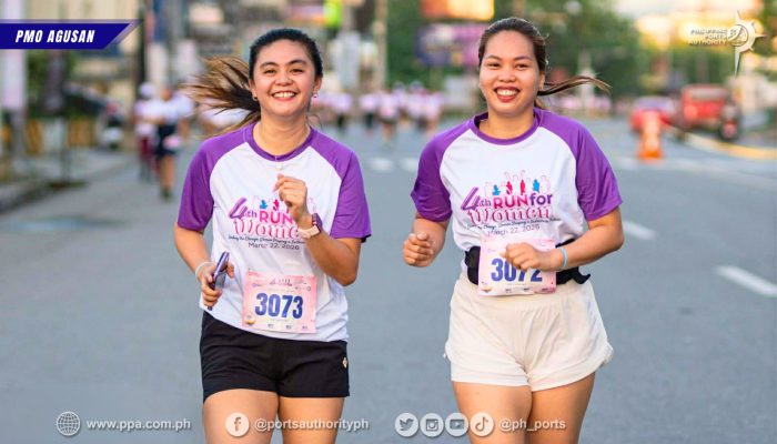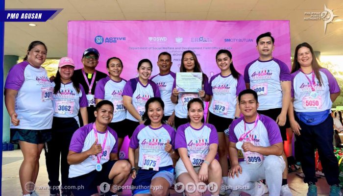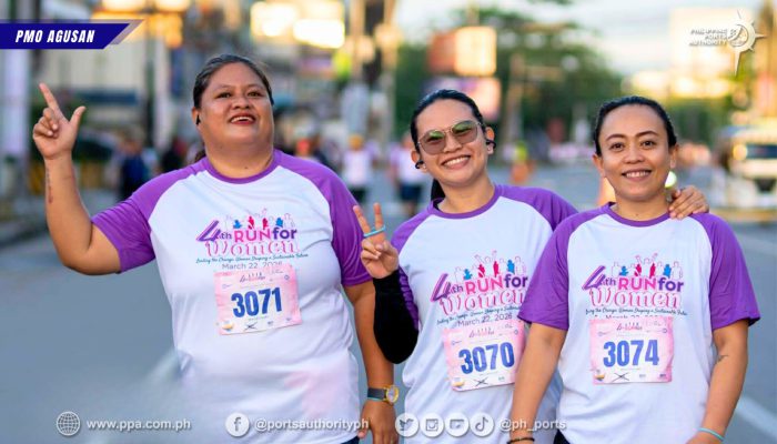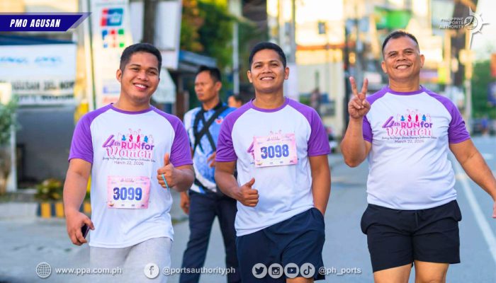 Personnel of the Philippine Ports Authority โ Port Management Office (PPA PMO) Agusan, together with Gender and Development (GAD) advocates, participated in the 4th Run for Women on March 22, 2026, organized by the Department of Social Welfare and Development (DSWD) Field Office Caraga to promote womenโs empowerment, gender equality, and inclusive, sustainable development.