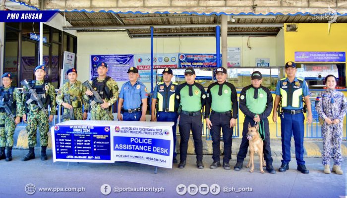 Sa pakikipagtulungan sa mga katuwang na ahensiya, kabilang ang Philippine Coast Guard (PCG), Philippine Drug Enforcement Agency (PDEA), Philippine National Police (PNP), Maritime Industry Authority (MARINA), Globalport Agusan Terminal Inc. (GATI), Concord Arrastre and Stevedoring Corp. (CASCOR), at mga lokal na pamahalaan (LGU), naglagay ang PMO Agusan ng mga PPA Help Desks sa mga pantalan upang mabilis na matugunan ang mga katanungan at pangangailangan ng mga pasahero.